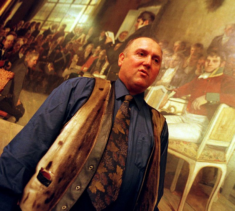 Oslo. Stortinget 1997. Representanter for det nye stortinget samlet for første gang. Steinar Bastesen fra Tverrpolitisk Folkevalgte, senere Kystpartiet, glir inn blant de historiske menn. Foto: Berit Roald / SCANPIX